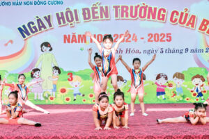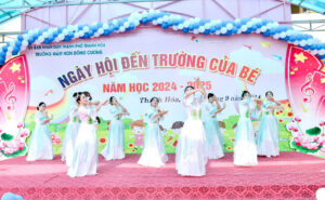 Các bé trường Mầm non Đông Cương tham gia 2 tiết mục văn nghệ tại đại hội chi bộ mẫu phố 1 phường Đông Cương